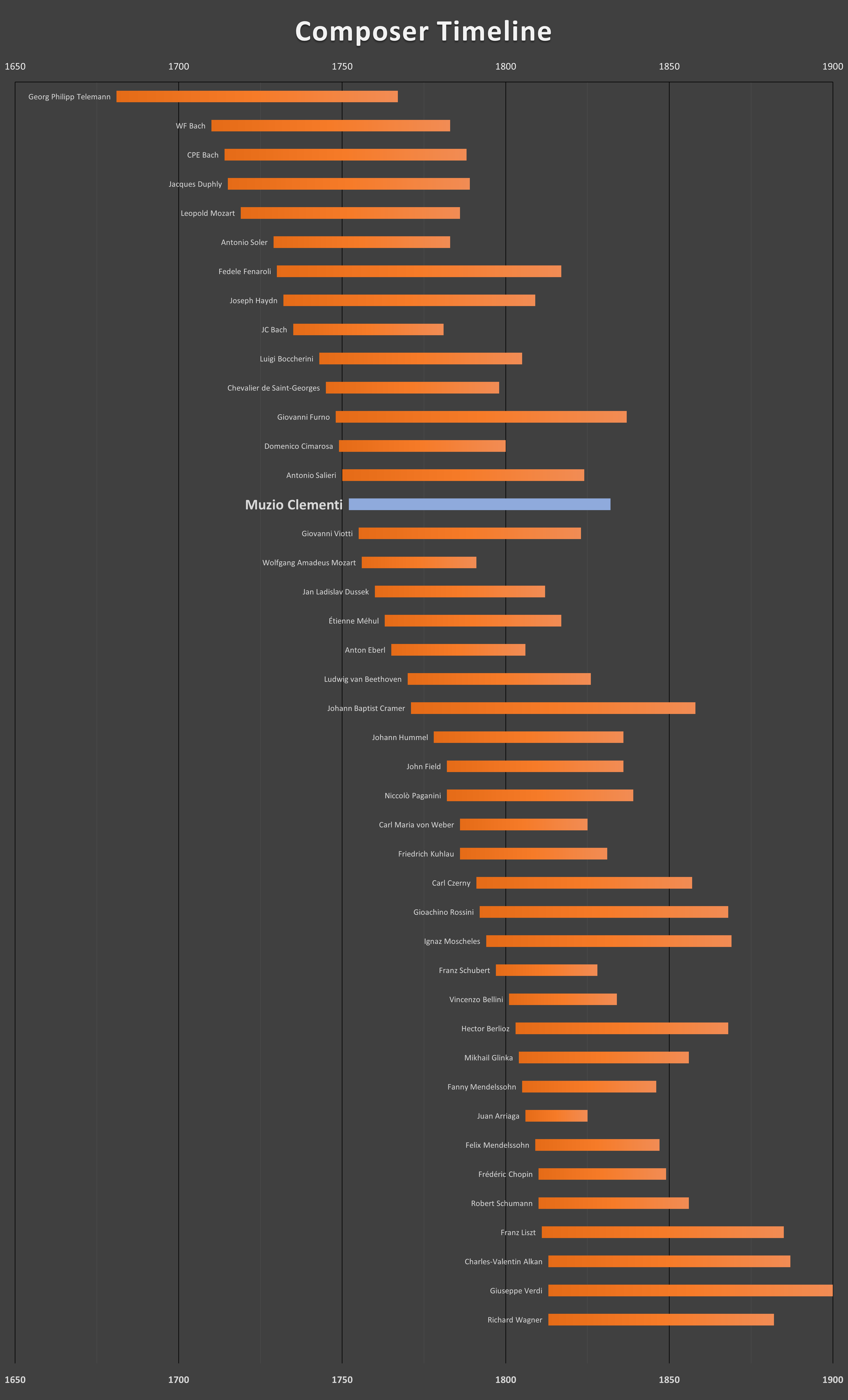 Clementi’s keyboard sonatas have always been a very neat collection of music in my mind. He lived so long, and composed keyboard sonatas so young and so late in his life, that his keyboard sonatas are themselves a sort of historical archive.